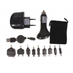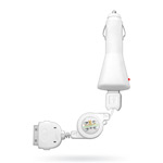 Универсальный комплект для зарядки Вашего iPhone (2G, 3G, 3GS, 4): в комплект входят AC адаптер для зарядки, адаптер для подзарядки от бортовой сети автомобиля и USB-кабель регулируемой длины.
